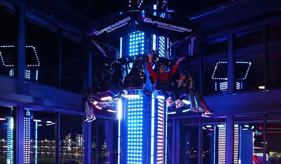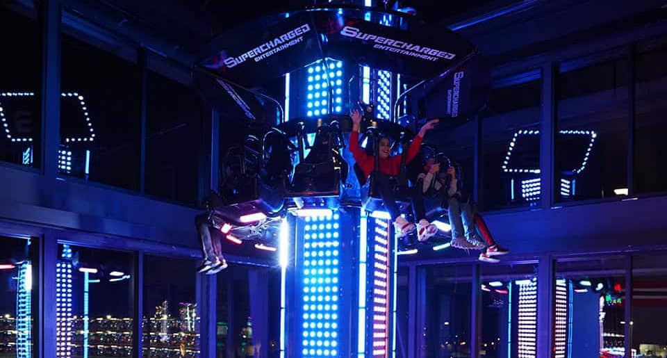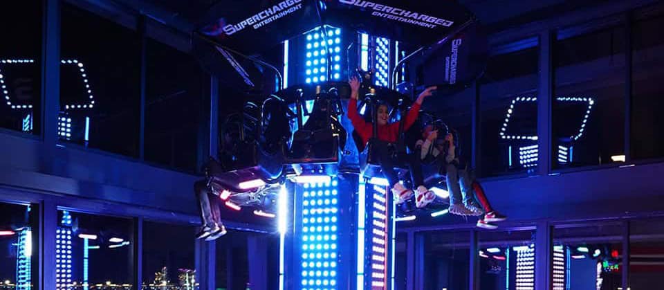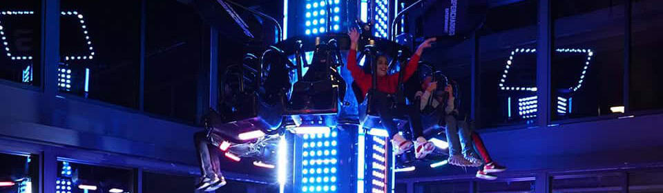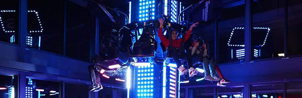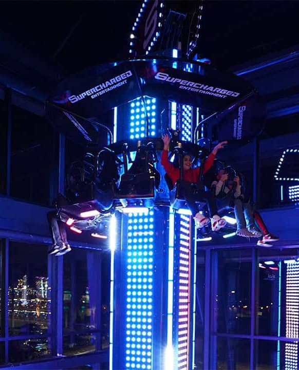 Do you like to spin? Do you like to drop? Well drop, spin, AND twist on our two-story tower ride passing through both floors and view all the wonders of Supercharged Entertainment.